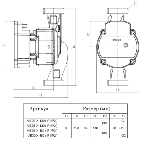 Насос циркуляционный частотный 25/6 130 мм VE25 VIEIR